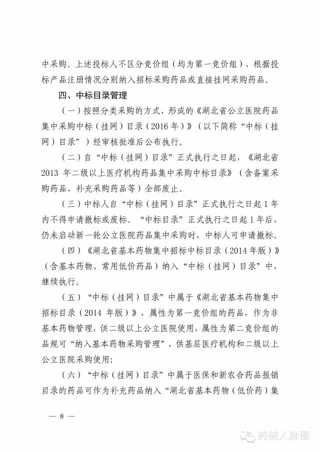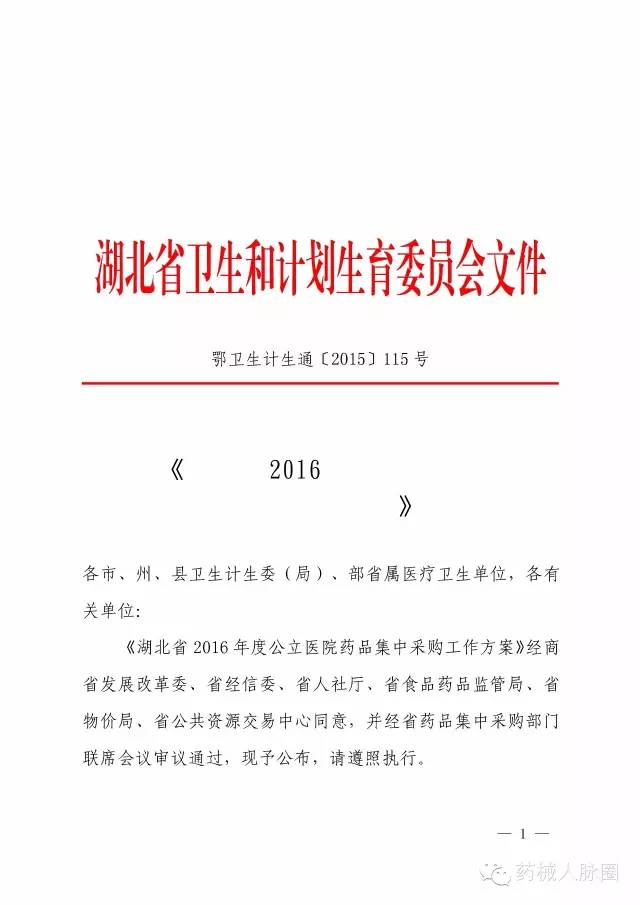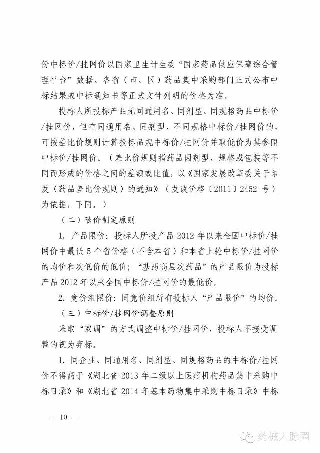 紅頭文件來了——湖北省2016年度公立醫(yī)院藥品集中采購工作方案已經(jīng)在昨日(12月29日)出爐了,方案中指出將采取“雙調(diào)”的方式調(diào)整中標(biāo)價/采購價,投標(biāo)人不接受調(diào)整的視為棄標(biāo)。下面是詳細(xì)文件:
