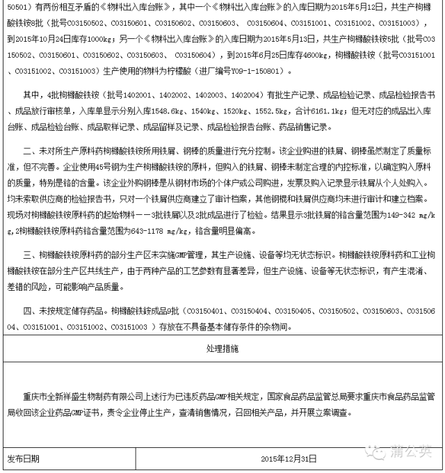 揭露鉻超標事件真相:對重慶市全新祥盛生物制藥飛行檢查情況