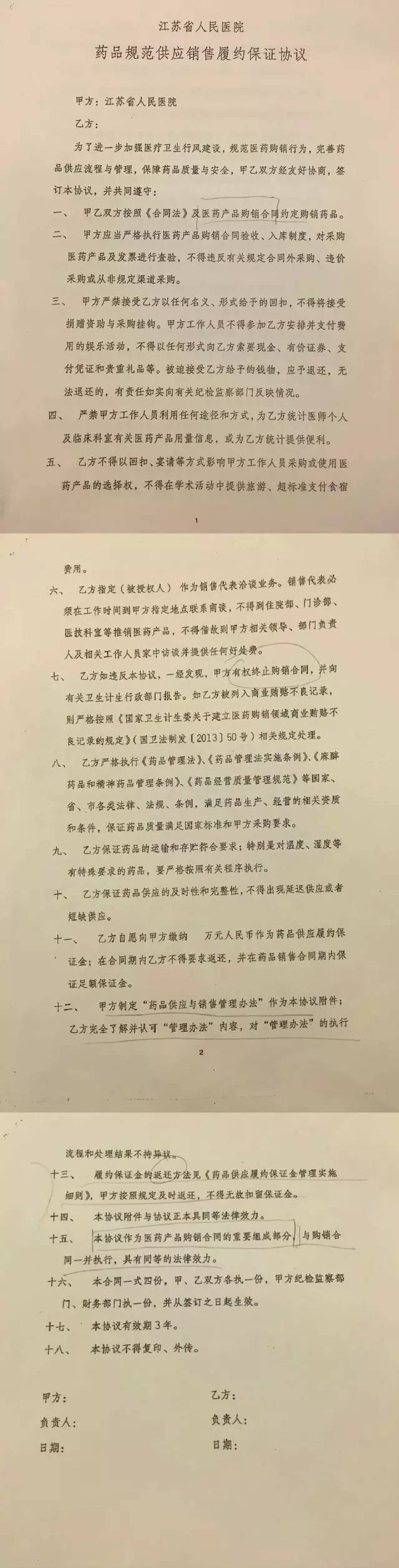 江蘇省人民醫(yī)院征繳保證金的消息一出,最大的爭議點(diǎn)就是醫(yī)院征繳保證金的目的。根據(jù)江蘇省人民醫(yī)院“藥品規(guī)范供應(yīng)銷售履約保證協(xié)議”,該院設(shè)立保證金是為了進(jìn)一步加強(qiáng)醫(yī)療衛(wèi)生行風(fēng)建設(shè),規(guī)范醫(yī)藥購銷行為,完善藥品供應(yīng)流程與管理,保障藥品質(zhì)量與安全。