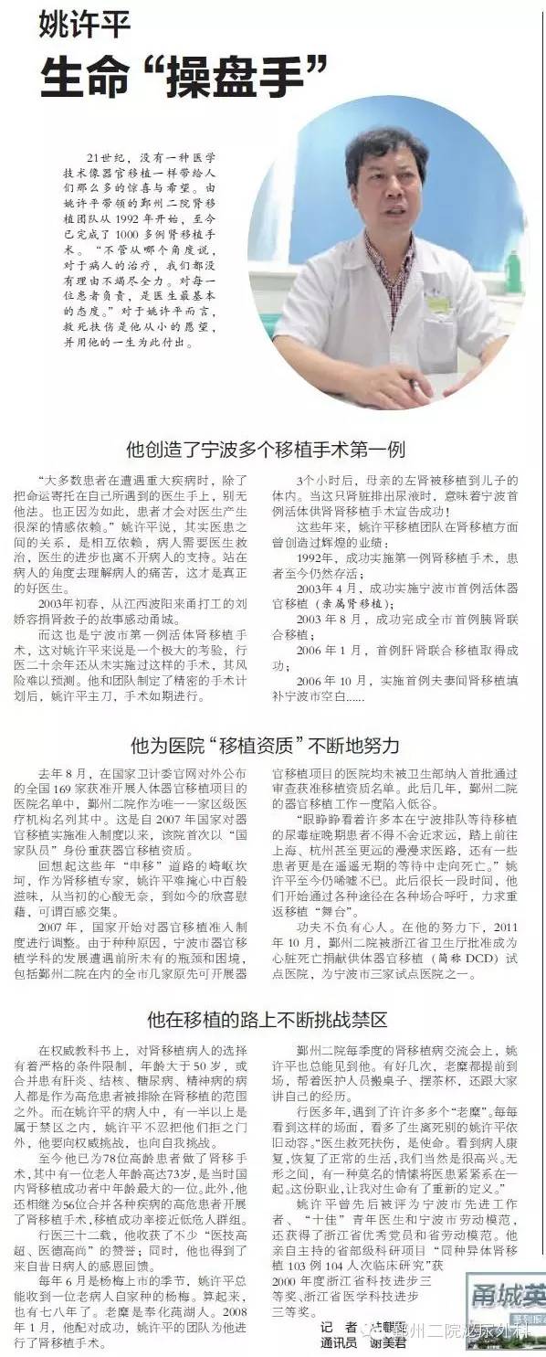 我院首任院長、正院級調(diào)研員姚許平教授作為鄞州衛(wèi)生系統(tǒng)唯一代表,與其他9位來自全市各大醫(yī)院的代表共獲“衛(wèi)生名醫(yī)獎”。