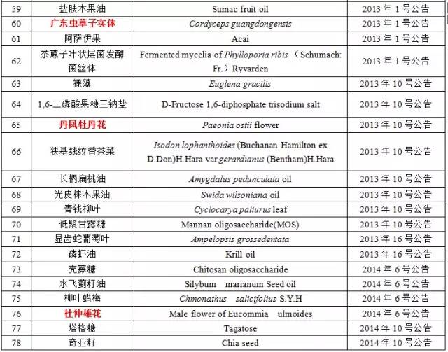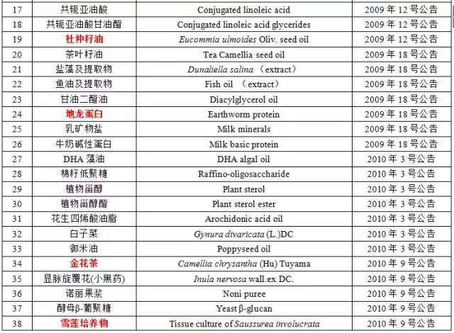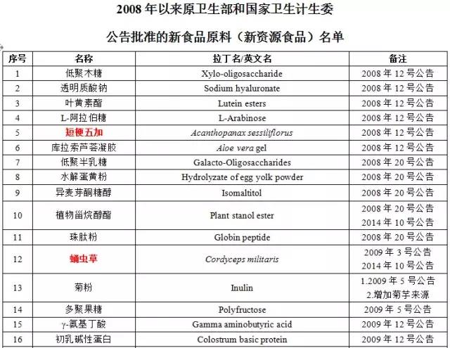 批準(zhǔn)的新食品原料名單截至2015年10月25日,2008年以來原衛(wèi)生部和國家衛(wèi)生計(jì)生委