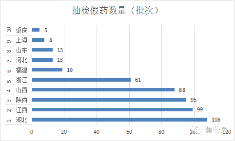 各省藥監(jiān)部門共查獲中藥材、中藥飲片、制劑509個品規(guī)、批次,涉及品種130個,其中中藥材中藥飲片488批次,中成藥12個占所有樣品的97.0%, 哎,又中標了,重災區(qū)還是中藥、中藥材詳見附件1。各省情況又差異很大,共有10個省、市抽檢查出假冒標示生產(chǎn)單位的假藥,最多的是湖北省共查出108個,其次是江西99個批次,見下圖: