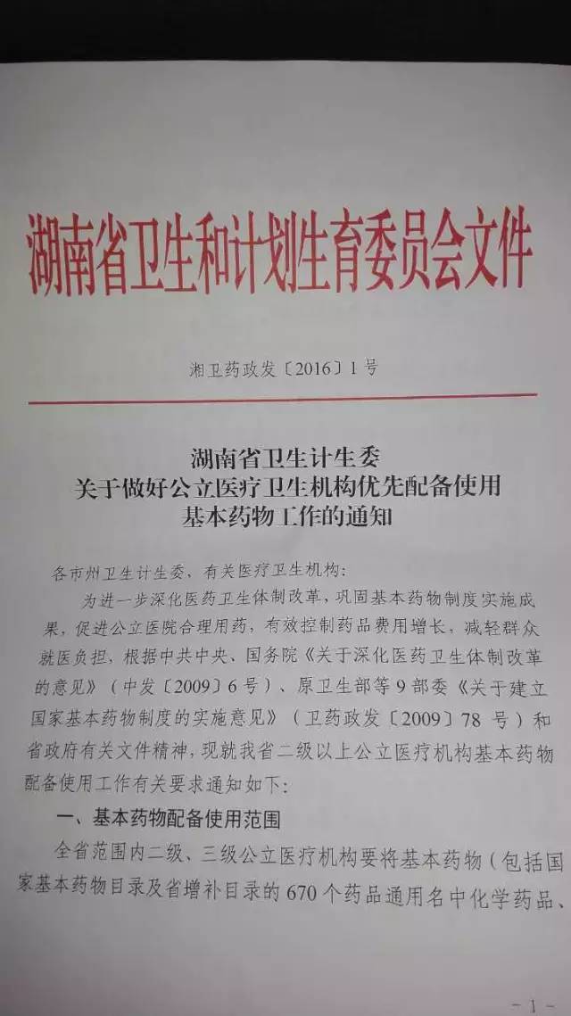 湖南衛(wèi)計委2016年1號文:優(yōu)先采購基藥