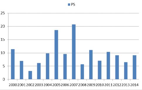 作為醫(yī)療機器人的領(lǐng)軍企業(yè),直覺外科公司(ISRG)市值最高曾達到220億美元。公司于2000年6月上市,前幾年由于技術(shù)太前瞻、市場認知度較低等原因,股價表現(xiàn)平平,此時公司的PS(市銷率)是12倍。在2001年-2004年P(guān)S都維持在10倍以下。
