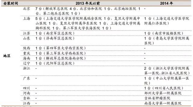 自2006年解放軍總醫(yī)院引進第一臺達芬奇手術(shù)機器人以來,達芬奇機器人已經(jīng)進入中國十年。然而由于達芬奇手術(shù)機器人屬于甲類大型醫(yī)用設(shè)備,國內(nèi)任何醫(yī)院引進該設(shè)備,均需衛(wèi)計委直接批準,所以引入速度一直較慢,自2006年引入第一臺達芬奇機器人以來,中國大陸目前的總裝機量還不到40臺,從達芬奇機器人數(shù)量也可以從側(cè)面看出各地醫(yī)療水平高低。