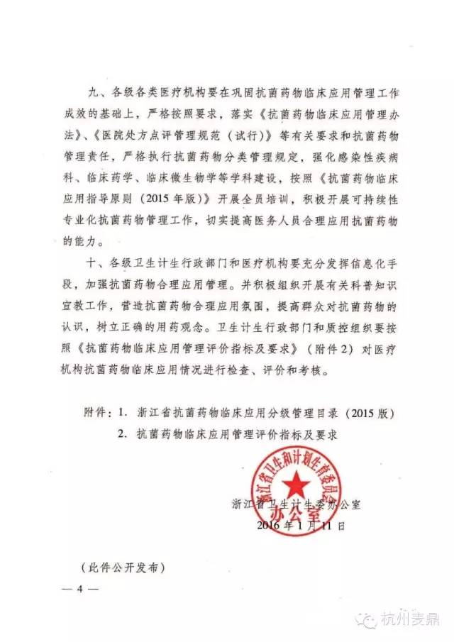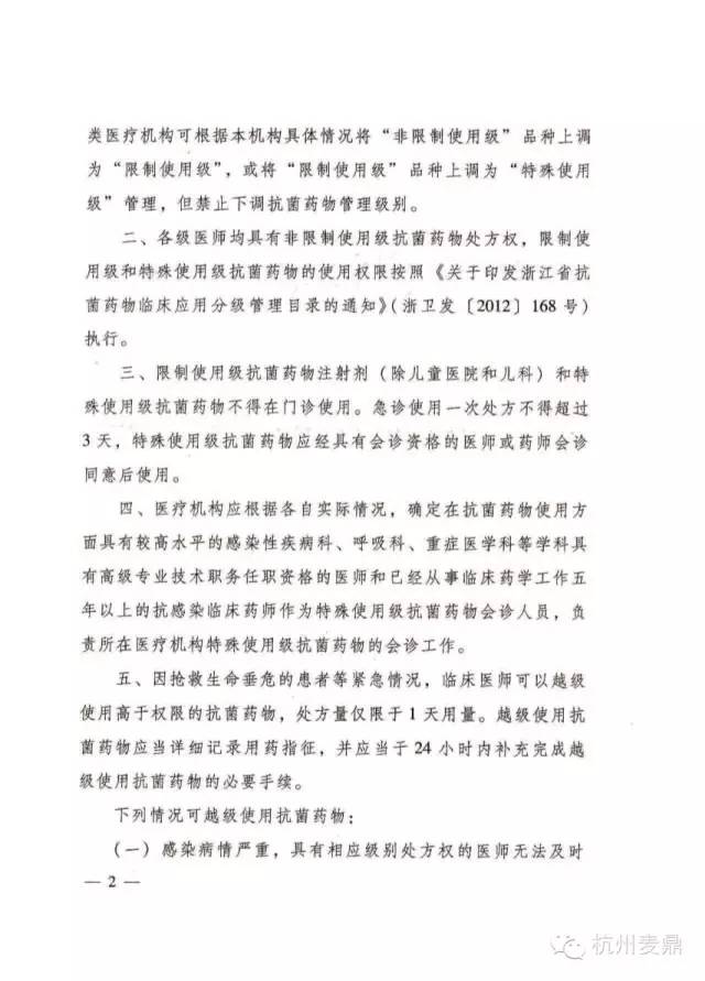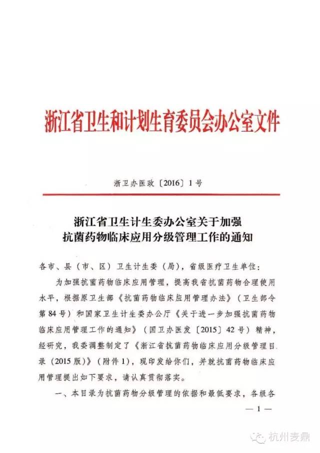 《浙江省衛(wèi)生計(jì)生委辦公室關(guān)于加強(qiáng)抗菌藥物臨床應(yīng)用分級(jí)管理工作的通知》