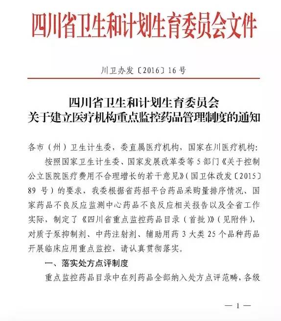 基于“省藥品招標(biāo)平臺采購排序情況、藥品不良反應(yīng)檢測報告情況和臨床實際”,四川省2月2日公布了首批重點監(jiān)控藥品目錄,主要包括質(zhì)子泵抑制劑、中藥注射劑和輔助用藥3大類,25個品種入選。具體清單如下: