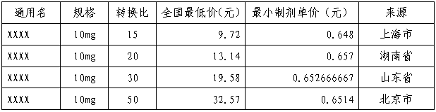 1.申報全國最低在線交易價格時,若同一規(guī)格有多個轉(zhuǎn)換比中標的,按最小制劑單價的全國最低價乘以相應(yīng)轉(zhuǎn)換比進行換算,如:
