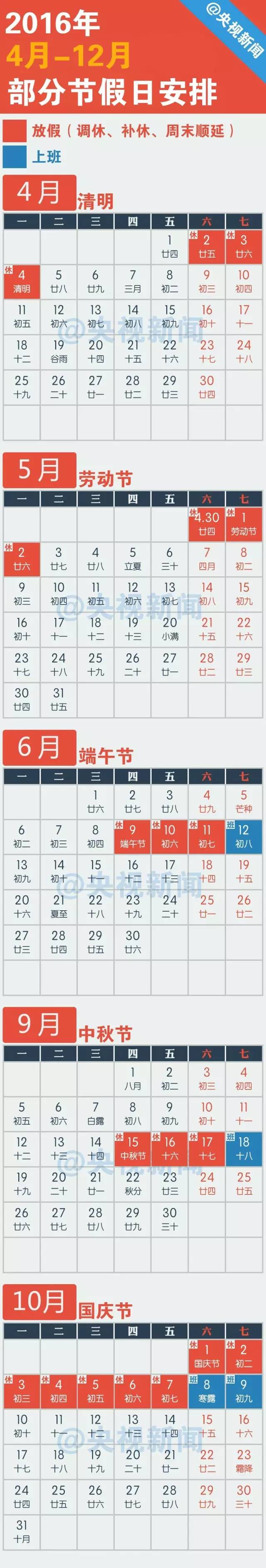 服務(wù) | 2016年4月-12月重要放假安排!最新版!