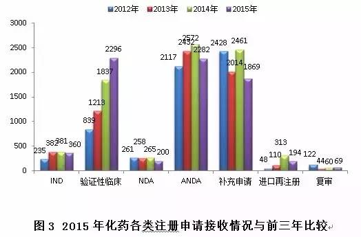 與前三年比較,驗證性臨床接收量逐年大幅增加,ANDA和補充申請下降較為明顯,具體見圖3。