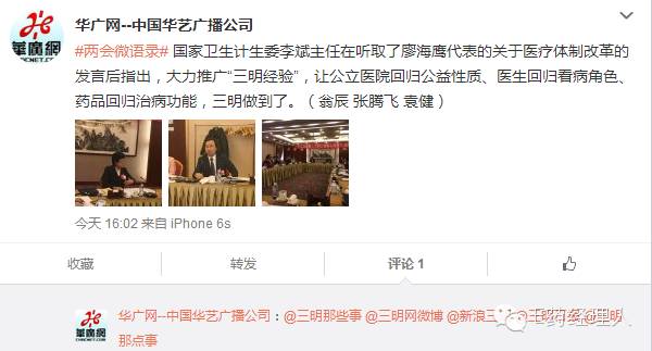 3月5日下午4點(diǎn),華廣網(wǎng)—中國(guó)華藝廣播公司在今天的新浪微博中發(fā)布一條微博,內(nèi)容大概是李斌在于臺(tái)灣省代表團(tuán)的代表廖海鷹交談時(shí),說到要大力推廣三明經(jīng)驗(yàn)。