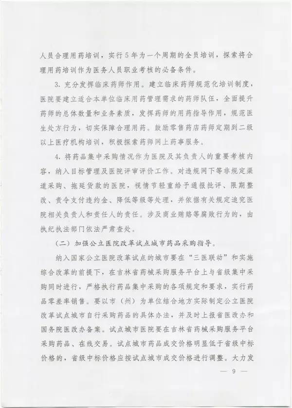 吉林關(guān)于完善公立醫(yī)院藥品集中采購(gòu)工作的實(shí)施意見(jiàn)
