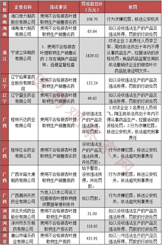 河北省食藥監(jiān)局處罰3家因使用不合格銀杏葉提取物生產(chǎn)假藥劣藥的藥品生產(chǎn)企業(yè)