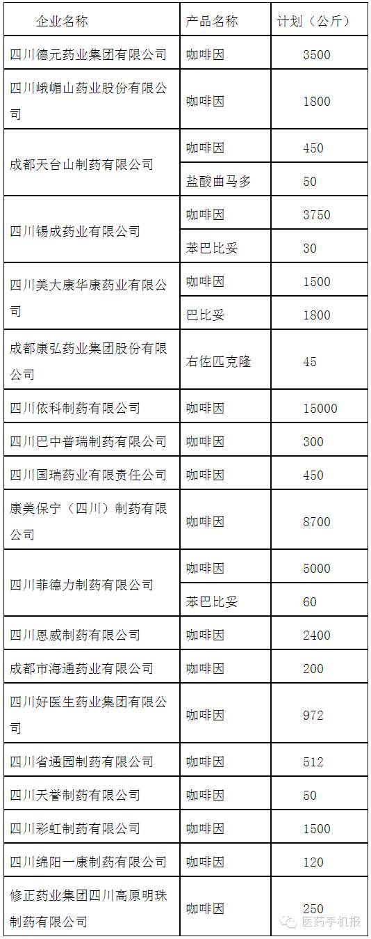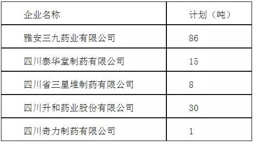 四川峨嵋山藥業(yè)股份有限公司,需用阿片酊量為3065立升。供應(yīng)單位:西南藥業(yè)股份有限公司。