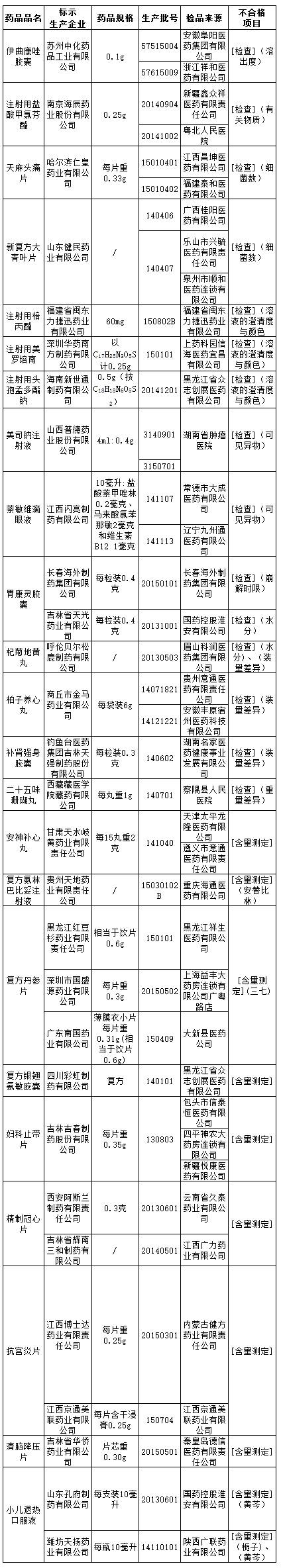 對(duì)上述不合格藥品,山西、內(nèi)蒙古等16?。▍^(qū))藥監(jiān)局已采取要求企業(yè)暫停生產(chǎn)銷(xiāo)售、立即召回產(chǎn)品等措施。國(guó)家藥監(jiān)總局要求有關(guān)省(區(qū))藥監(jiān)局責(zé)令相關(guān)企業(yè)認(rèn)真查找原因,并根據(jù)情況立案調(diào)查,依法處理。查處情況于2016年5月31日前向社會(huì)公布,并報(bào)國(guó)家總局。