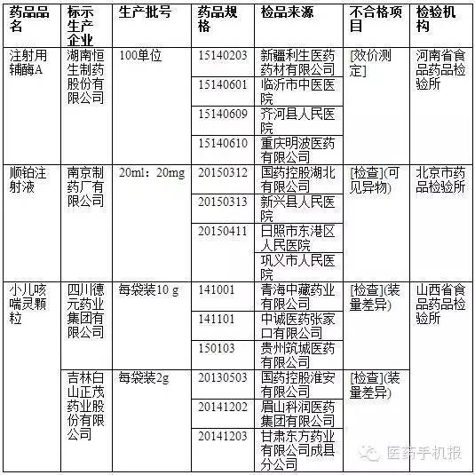 湖南恒生制藥股份有限公司、南京制藥廠有限公司、四川德元藥業(yè)集團(tuán)有限公司和吉林白山正茂藥業(yè)股份有限公司多批次產(chǎn)品不合格,反映該4家企業(yè)在質(zhì)量管理方面存在問(wèn)題。國(guó)家藥監(jiān)總局要求吉林、江蘇、湖南、四川省食品藥品監(jiān)督管理局責(zé)令上述企業(yè)徹查藥品質(zhì)量問(wèn)題原因,并采取有針對(duì)性的措施進(jìn)行整改,整改到位前不得恢復(fù)生產(chǎn);對(duì)上述企業(yè)依據(jù)《中華人民共和國(guó)藥品管理法》相關(guān)規(guī)定查處。查處情況于2016年5月31日前向社會(huì)公布,并報(bào)總局。