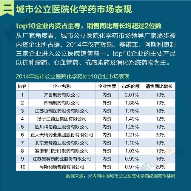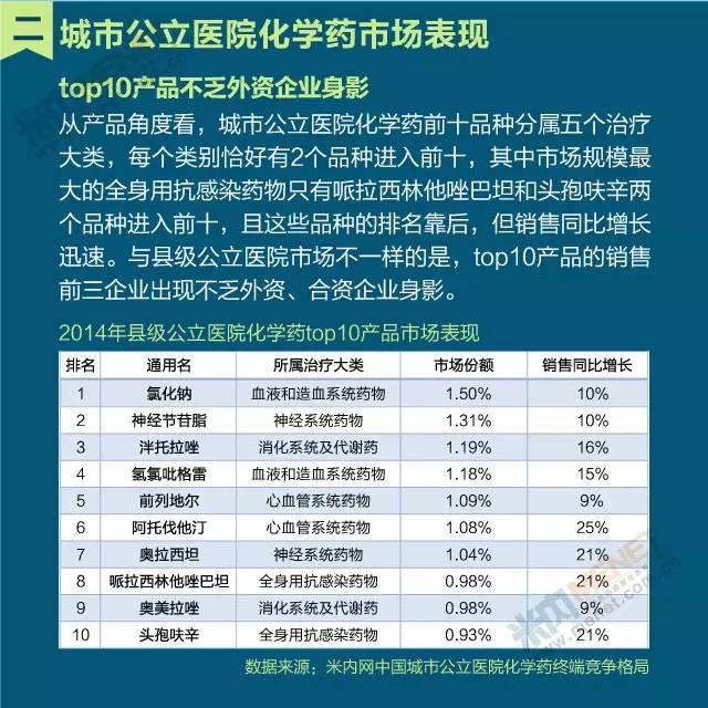 中國(guó)城市公立醫(yī)院化藥10大企業(yè)和10大品種