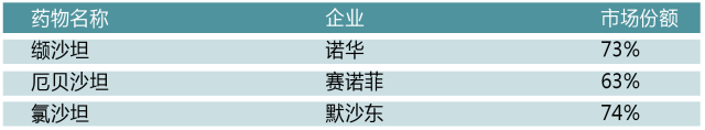 氯沙坦是世界第一個(gè)沙坦類藥物,是FDA于1995年批準(zhǔn)的新分子實(shí)體,商品名“科索亞”;厄貝沙坦于1997年獲批,是賽諾菲-安萬特的產(chǎn)品,商品名為“安博維”;纈沙坦商品名為“代文”,1996年獲得FDA批準(zhǔn)。目前三個(gè)沙坦類在國內(nèi)外均有多家企業(yè)生產(chǎn)。