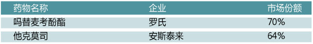 嗎替麥考酚酯是羅氏1995年獲批的新分子實(shí)體,屬于嘌呤合成酶抑制劑,臨床用于器官移植排斥反應(yīng),還用于紅斑狼瘡、狼瘡性腎病、IgA腎病等癥。2015年為羅氏帶來7.85億瑞士法郎的銷售額,相比去年有所下降。2002年羅氏將該品種帶入中國,2005年國內(nèi)企業(yè)陸續(xù)開始獲批生產(chǎn),雖然經(jīng)過十年的努力,國內(nèi)企業(yè)的份額始終在30%左右徘徊。