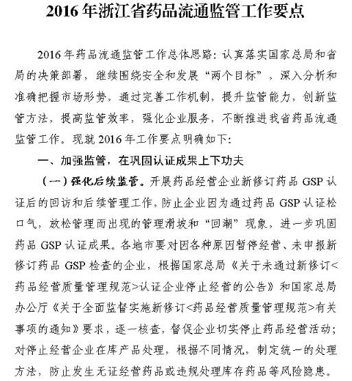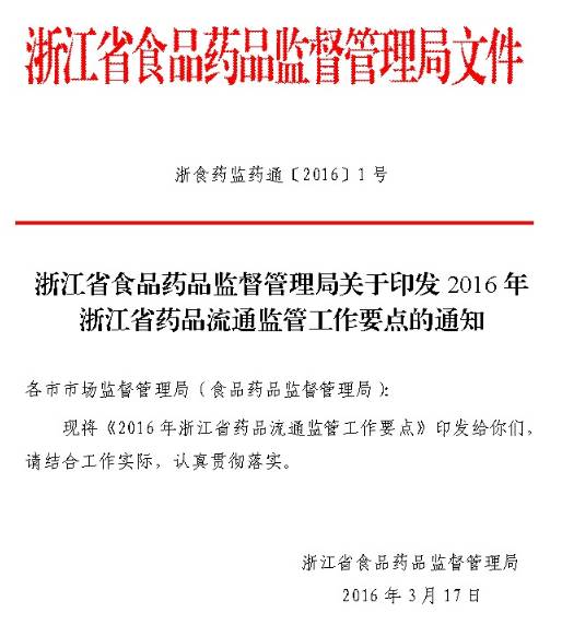 今日(3月18日),浙江省食藥監(jiān)局發(fā)布《2016年浙江省藥品流通監(jiān)管工作要點(diǎn)》,明確要求2016年將加強(qiáng)藥品流通的監(jiān)管工作。