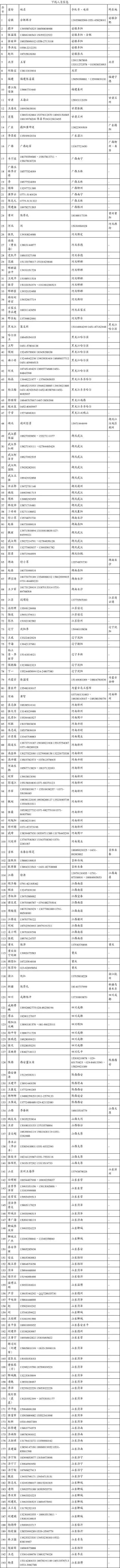 安徽,北京,福建,甘肅,廣東,廣西,貴州,河北,河南,黑龍江,湖北,吉林,江蘇,江西,重慶,浙江,四川,陜西,山西,山東,湖南,遼寧,內蒙古,新疆。