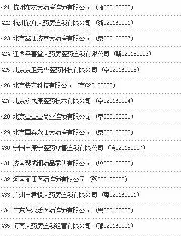 以下為筆者根據(jù)CFDA公布數(shù)據(jù)整理出截至2016年3月17日全國網(wǎng)上藥店總名單: