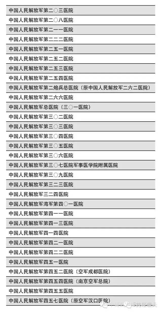 附:112家軍隊(duì)醫(yī)院名錄