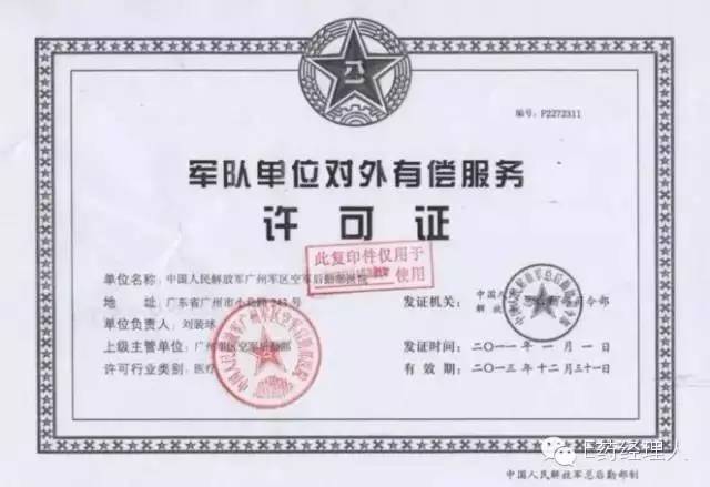 之前允許軍隊(duì)單位有償服務(wù)的許可證