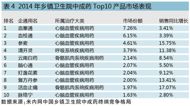 【基層市場】鄉(xiāng)鎮(zhèn)衛(wèi)生院化學(xué)藥與中成藥Top 10產(chǎn)品