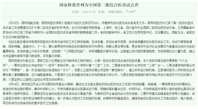 據賽柏藍了解,以省級為單位的綜合醫(yī)改試點始于2014年底,是國家在縣級公立醫(yī)院改革基本全覆蓋、城市級改革試點進一步擴大基礎上推出的新舉措。