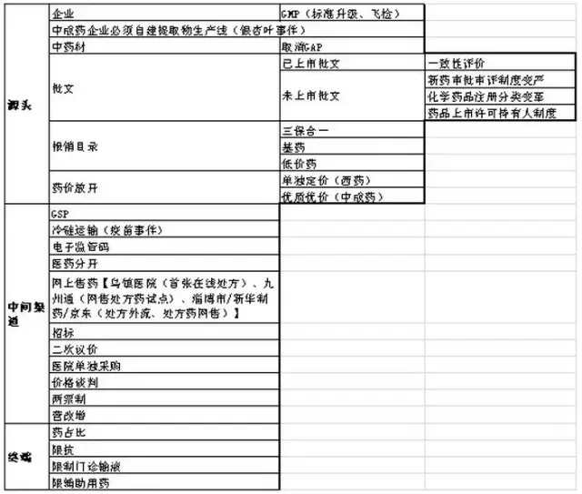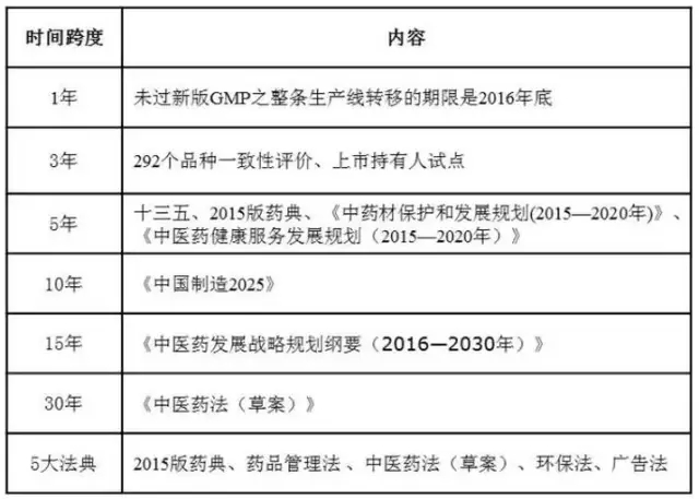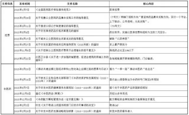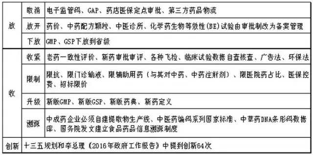 2015年以來,發(fā)布的政策法規(guī)主要圍繞質(zhì)量、創(chuàng)新、控費(fèi)、中醫(yī)藥這四大核心主題,其目的在于深化醫(yī)改,也就是要解決看病難、看病貴和醫(yī)保透支的問題,而改革的進(jìn)程卻呈現(xiàn)出由醫(yī)改到藥改再控費(fèi),最后寄厚望于中醫(yī)藥(甘肅模式)的格局,就制藥工業(yè)而言,化藥向前看(國(guó)際化),中藥向后望(重在傳承)成為必然選擇。