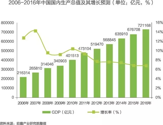 據(jù)國家統(tǒng)計局公布的數(shù)據(jù),2015年,中國國內(nèi)生產(chǎn)總值增速放緩。2015年,中國國內(nèi)生產(chǎn)總值為676708億元,按可比價格計算,同比增長6.90%。分產(chǎn)業(yè)看,第一產(chǎn)業(yè)增加值60863億元,增長3.9%;第二產(chǎn)業(yè)增加值274278億元,增長6.0%;第三產(chǎn)業(yè)增加值341567億元,增長8.3%。預計2016年我國GDP將保持6.8%左右增速,達到72萬億元。