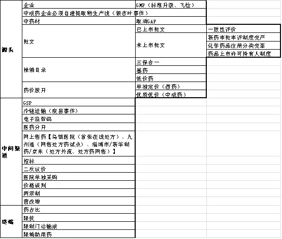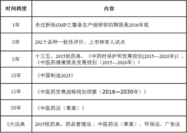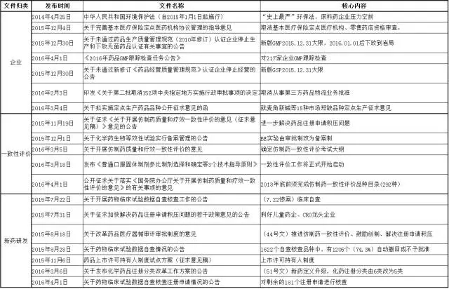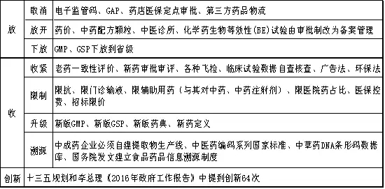 2015年以來,發(fā)布的政策法規(guī)主要圍繞質(zhì)量、創(chuàng)新、控費、中醫(yī)藥這四大核心主題,其目的在于深化醫(yī)改,也就是要解決看病難、看病貴和醫(yī)保透支的問題,而改革的進程卻呈現(xiàn)出由醫(yī)改—到藥改—到控費—最后寄厚望于中醫(yī)藥(甘肅模式)的格局,就制藥工業(yè)而言,化藥向前看(國際化),中藥向后望(重在傳承)成為必然選擇。