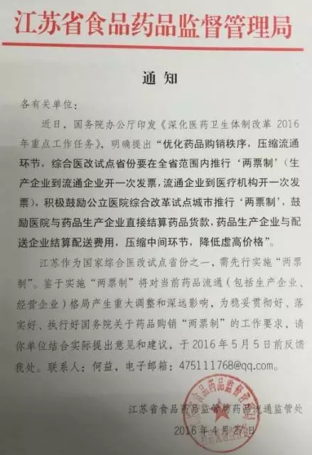 此外,大家是否注意到,在朋友圈瘋傳的江蘇的“紅頭文件”中,發(fā)文單位是江蘇省食藥監(jiān)局藥品流通監(jiān)管處。藥品集中采購的主管部門不是衛(wèi)計(jì)委么?為啥是藥監(jiān)部門首先積極響應(yīng)政策?