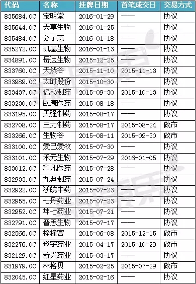 截止2016年1月29日,已有31家中藥企業(yè)掛牌新三板: