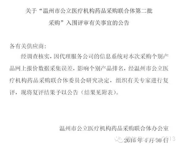 2016年浙江省溫州市關(guān)于公立醫(yī)療機(jī)構(gòu)藥品采購(gòu)聯(lián)合體第二批采購(gòu)的補(bǔ)充公告