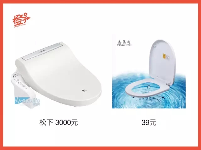 日本馬桶蓋就是個例子。我在京東找到賣得很好的馬桶圈39 元,而松下的馬桶圈卻要 3000 元。他的材料估計相差沒有到100倍之多,但是價格卻有100倍之差,而且一群中國大媽瘋搶。
