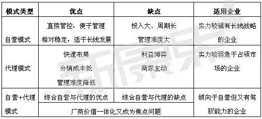 需要說明的是,隨著市場的不斷深入,模式本身也不是一成不變的。比如剛起步的企業(yè)用的是招商模式,隨著企業(yè)的成長,在發(fā)展階段就變成了自營模式。模式的好與壞主要是看企業(yè)的實際需求,和模式本身無關(guān)。