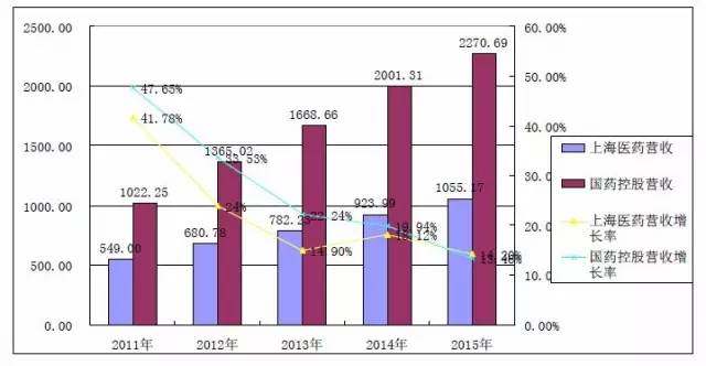 2015年,上海醫(yī)藥營收首次突破千億元,繼國藥控股之后加入千億俱樂部行列,這兩家是國內(nèi)醫(yī)藥流通領(lǐng)域的龍頭企業(yè),我們來對比一下他們的發(fā)展情況。