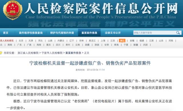 寧波檢察機關監(jiān)督一起涉嫌虛假廣告、銷售偽劣產品犯罪案件