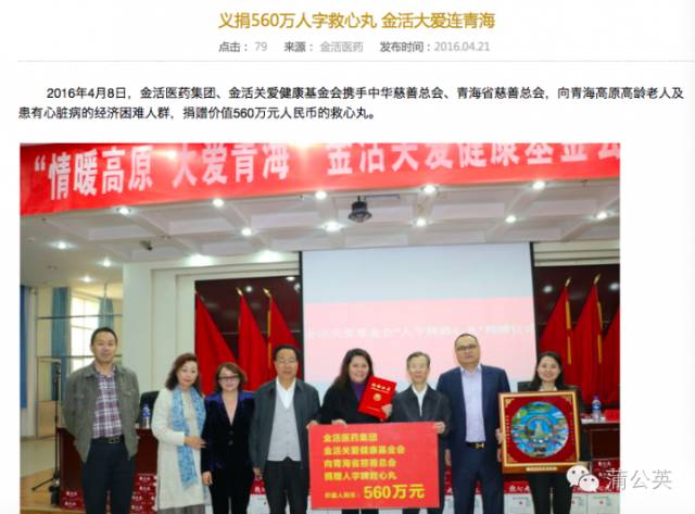 因?yàn)橛辛似压?,最近我?jīng)常在網(wǎng)上搜集注意查看一些有關(guān)藥品的公益活動(dòng),今日,搜到這樣一條信息:義捐560萬人字救心丸 金活大愛連青海大概內(nèi)容如下: