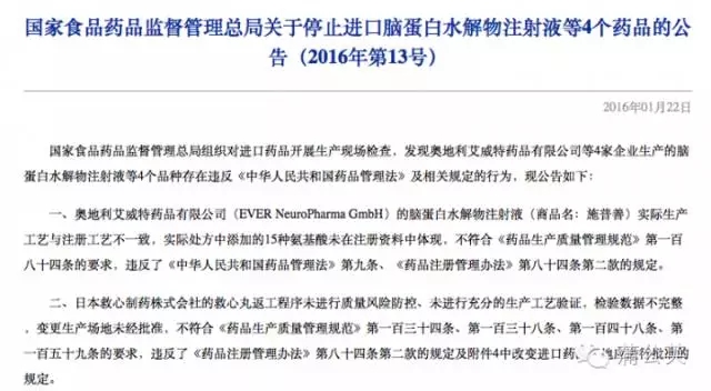 對于該企業(yè)的捐贈(zèng)活動(dòng),表示贊賞的同時(shí),也需要提醒藥企對于法規(guī)的關(guān)注,2016年1月22日,CDFA官網(wǎng)發(fā)表公告,對進(jìn)口藥品開展生產(chǎn)現(xiàn)場檢查過程中發(fā)現(xiàn)奧地利艾威特藥品有限公司等4家企業(yè)生產(chǎn)的腦蛋白水解物注射液等4個(gè)品種存在違反《中華人民共和國藥品管理法》及相關(guān)規(guī)定的行為,其中就包括日本救心制藥株式會(huì)社的救心丸。