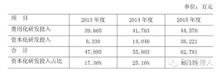 1.制劑藥:2015年制劑藥研發(fā)支出資本化金額較2014年增加10,946萬元,主要原因系公司在布局創(chuàng)新藥和生物藥開發(fā)的同時(shí),也加強(qiáng)仿制藥制劑的開發(fā),公司著眼高端仿制藥,差異化特殊制劑如脂質(zhì)體和白蛋白等藥物開發(fā),涉及品種較多,且公司專業(yè)團(tuán)隊(duì)對(duì)每個(gè)制劑藥進(jìn)行評(píng)估,對(duì)已進(jìn)入到開發(fā)階段且開發(fā)成功可能性較大的品種進(jìn)行資本化處理。