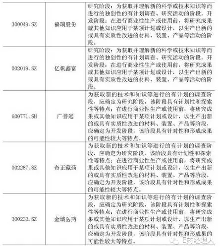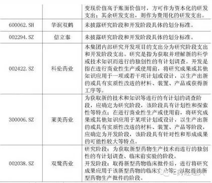 通過與同行業(yè)公司及恒瑞醫(yī)藥相關(guān)政策的比較,同行業(yè)公司界定開發(fā)階段的起點(diǎn)主要分兩類,一是以可以進(jìn)入臨床或以申報(bào)期為起點(diǎn),二是進(jìn)行商業(yè)化生產(chǎn)或使用前。