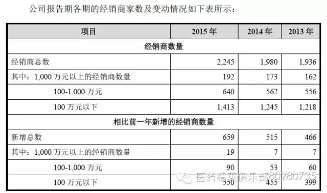 報(bào)告期內(nèi),公司根據(jù)市場變化以及經(jīng)銷商的經(jīng)銷業(yè)績調(diào)整經(jīng)銷商體系。2012年至2015年,與公司報(bào)告期內(nèi)持續(xù)存在業(yè)務(wù)往來的經(jīng)銷商數(shù)量有860個。報(bào)告期內(nèi)經(jīng)銷商的變動主要集中在100萬元以下規(guī)模的經(jīng)銷商,而100萬元以上規(guī)模的經(jīng)銷商較為穩(wěn)定。