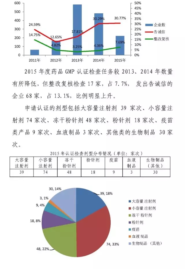 2015年藥品GMP跟蹤檢查計(jì)劃271家次,主要為注射劑、預(yù)防類生物制品(疫苗),同時(shí)涵蓋口服固體制劑,體外診斷試劑、原料藥等。全年實(shí)際檢查181家次,101家停產(chǎn)企業(yè)未檢查。另增補(bǔ)11家抗結(jié)核二線藥物硫酸阿米卡星類藥品的生產(chǎn)企業(yè)納入檢查計(jì)劃,其中1家企業(yè)無該產(chǎn)品生產(chǎn)。