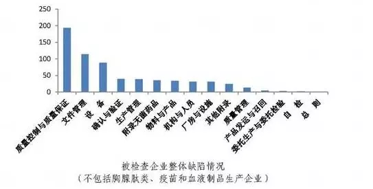 疫苗、血液制品及其他企業(yè)(不含胸腺肽類、疫苗、血液制品)檢查發(fā)現(xiàn)質(zhì)量控制與質(zhì)量保證缺陷情況最多