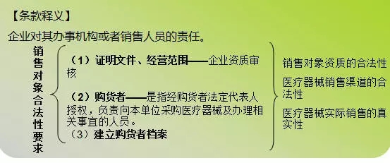 第七章 銷售、出庫與運輸第四十七條 醫(yī)療器械經(jīng)營企業(yè)對其辦事機構(gòu)或者銷售人員以本企業(yè)名義從事的醫(yī)療器械購銷行為承擔(dān)法律責(zé)任。醫(yī)療器械經(jīng)營企業(yè)銷售人員銷售醫(yī)療器械,應(yīng)當(dāng)提供加蓋本企業(yè)公章的授權(quán)書。授權(quán)書應(yīng)當(dāng)載明授權(quán)銷售的品種、地域、期限,注明銷售人員的身份證號碼。?從事醫(yī)療器械批發(fā)業(yè)務(wù)的企業(yè),應(yīng)當(dāng)將醫(yī)療器械批發(fā)銷售給合法的購貨者,銷售前應(yīng)當(dāng)對購貨者的證明文件、經(jīng)營范圍進行核實,建立購貨者檔案,保證醫(yī)療器械銷售流向真實、合法。
