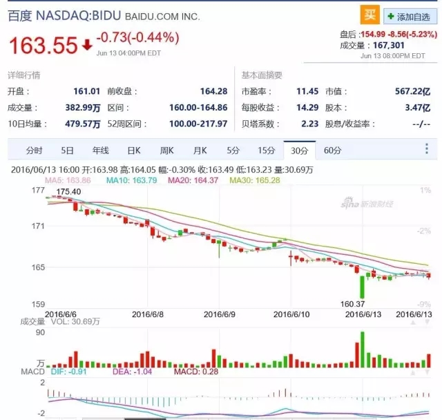 受此影響,百度股價在納斯達(dá)克周一開市后應(yīng)聲暴跌了8%。