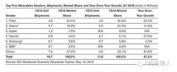 但市場(chǎng)調(diào)研機(jī)構(gòu)的數(shù)據(jù)仍然在鼓吹這一市場(chǎng),IDG最近發(fā)布的報(bào)告指出,在2016年第一季度,可穿戴設(shè)備出貨量相比去年同年上漲了67.2%。